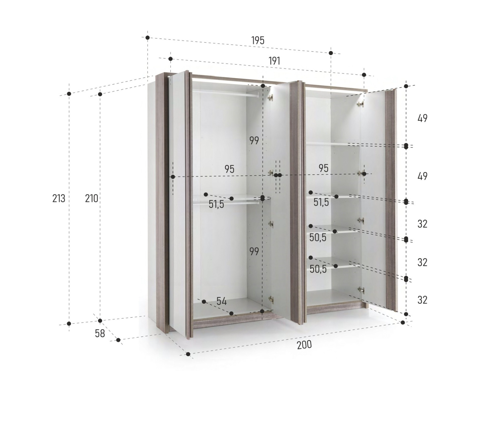 Les dimensions généreuses de longueur 200 cm, hauteur 210 cm et profondeur 60 cm s'adaptent parfaitement aux grands espaces.