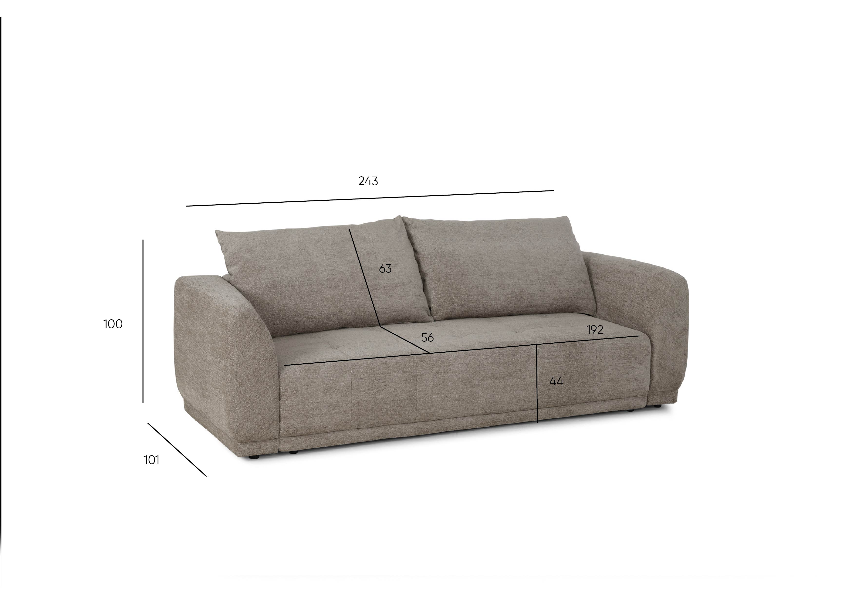 Avec ses dimensions généreuses de longueur 243 cm et profondeur 101 cm, il s'intègre parfaitement dans un salon moderne ou classique.