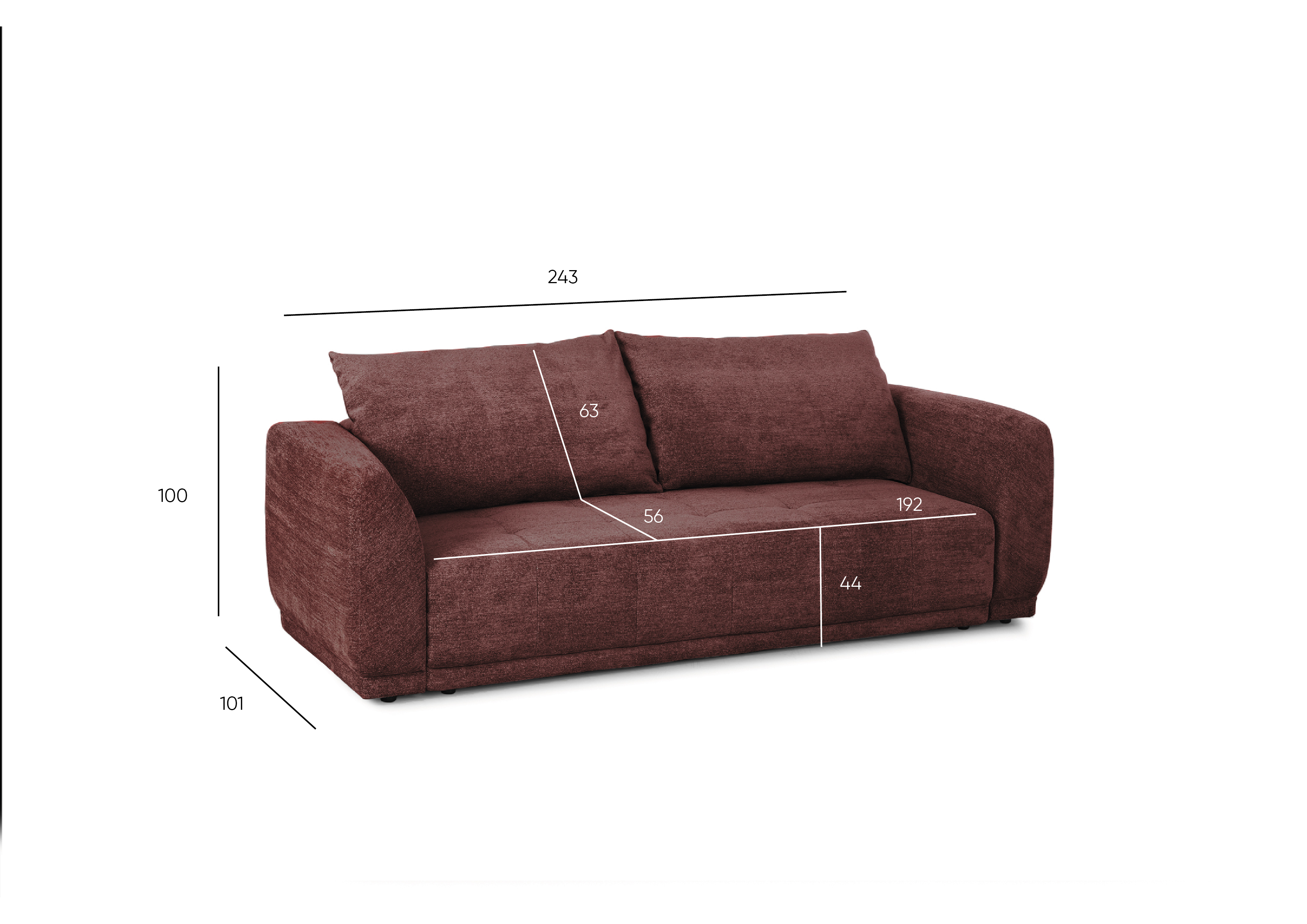 Avec des dimensions de longueur 243 cm, profondeur 101 cm et hauteur 100 cm, ce canapé est idéal pour les espaces de taille moyenne.