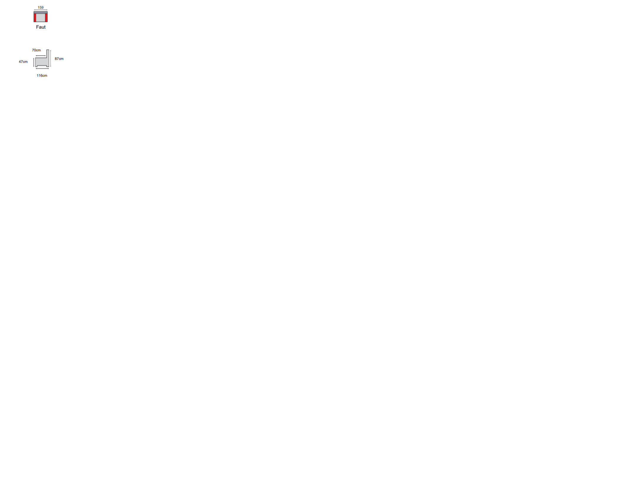 Avec des dimensions de longueur 159 cm, hauteur 87 cm et profondeur 116 cm, ce fauteuil s'intègre aisément dans un salon spacieux.