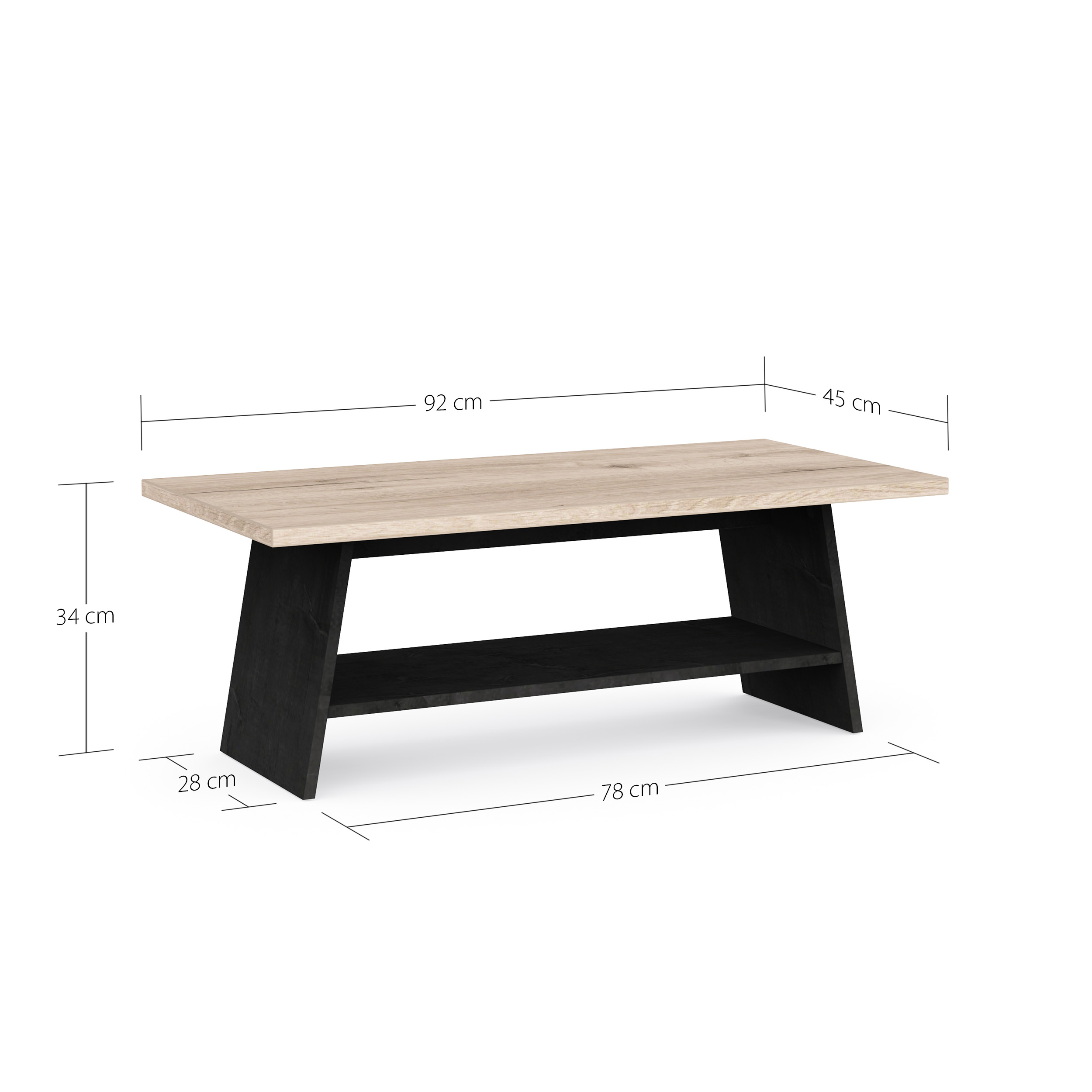 Avec ses dimensions compactes de 91,8 x 45 x 34 cm, elle s'intègre parfaitement dans les petits espaces, tout en offrant un double plateau pratique pour le rangement de vos magazines ou télécommandes.