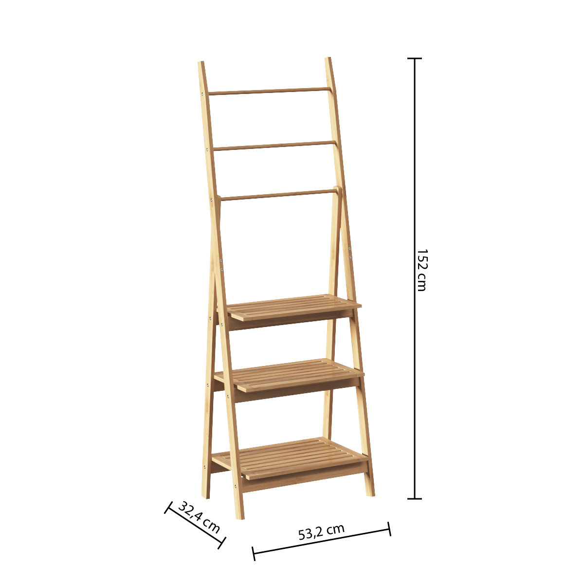 Ce modèle est doté de 3 barres pour suspendre vos serviettes et de 3 étagères pour organiser vos produits de toilette.