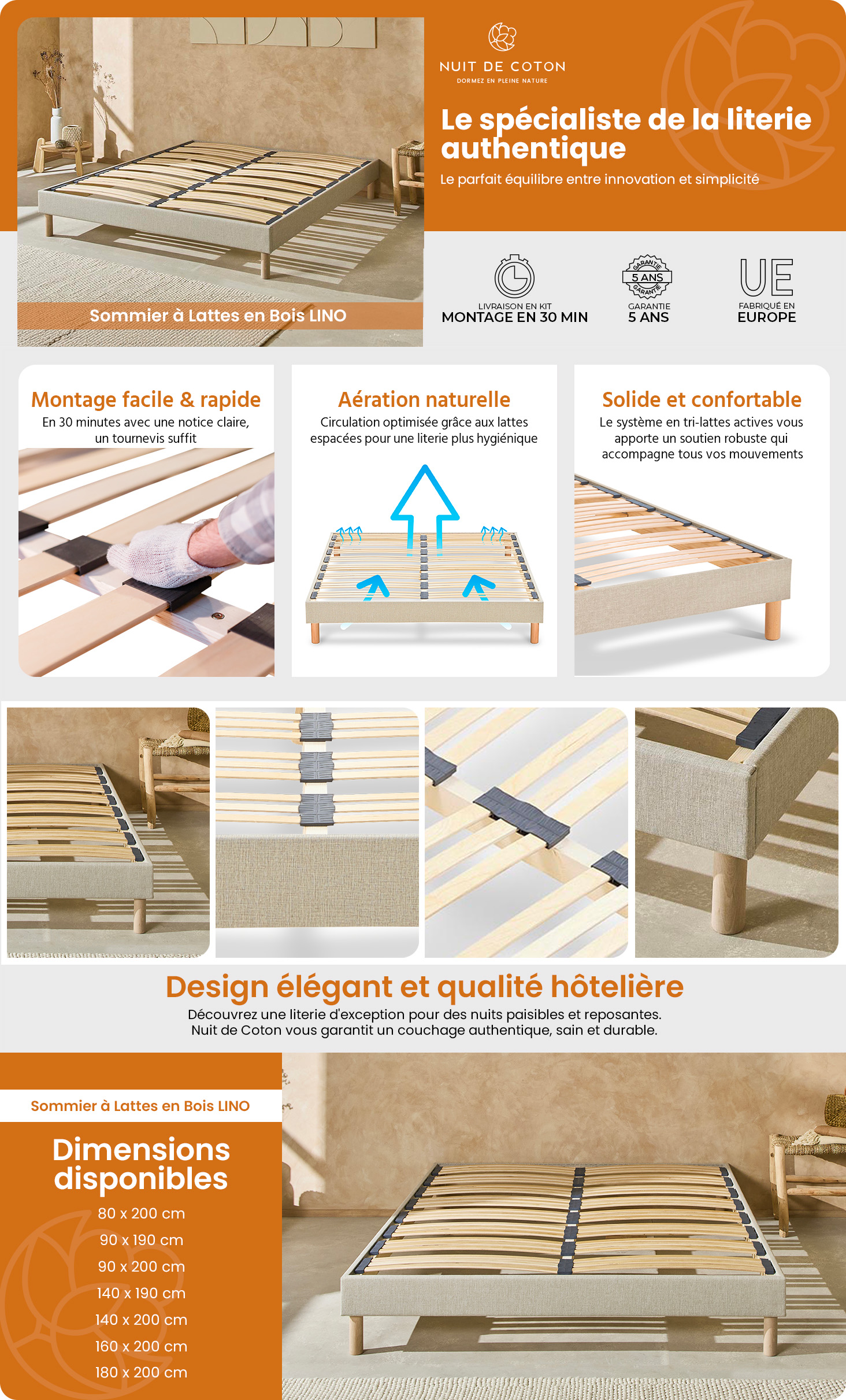 NUIT DE COTON Sommier à Lattes En Bois Lino 90x190 Cm Coloris Beige Livré En Kit