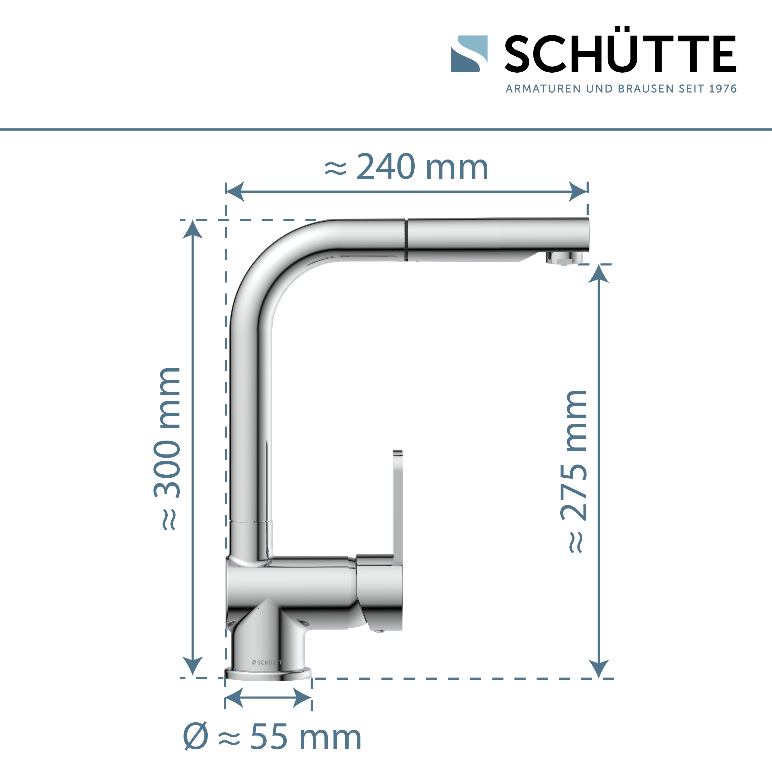 Le Mitigeur LONDON Chromé de la marque SCHUTTE allie élégance et fonctionnalité pour votre cuisine.