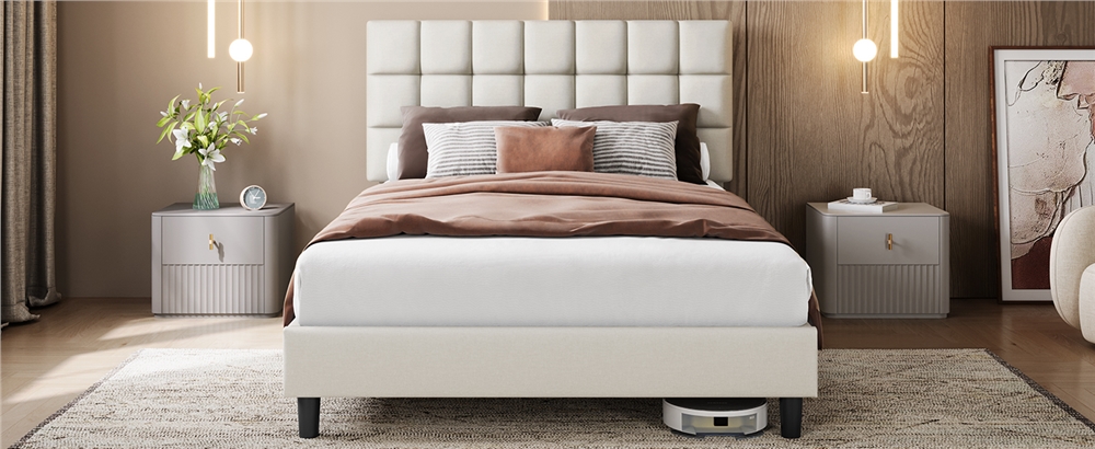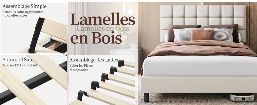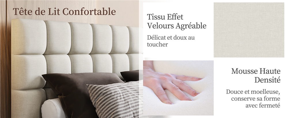 Découvrez l'élégance moderne dans votre chambre avec notre cadre de lit rembourré, muni d'une tête de lit carrée somptueusement capitonnée.