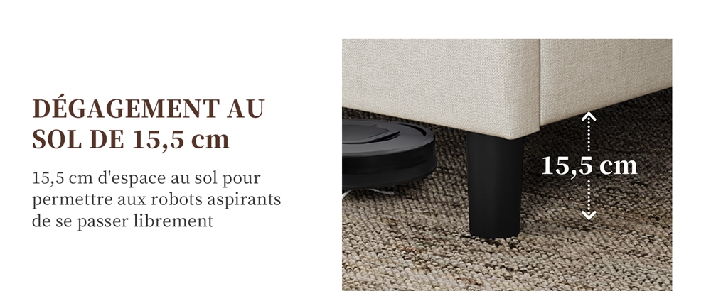 2. ✨【Facile à entretenir】Au revêtement doux et résistant, le cadre de lit capitonné vous offre un confort optimal tout en facilitant le nettoyage quotidien. Grâce à une garde au sol 15,5 cm de haut, vous pouvez laisser le robot aspirateur faire le travail à votre place.