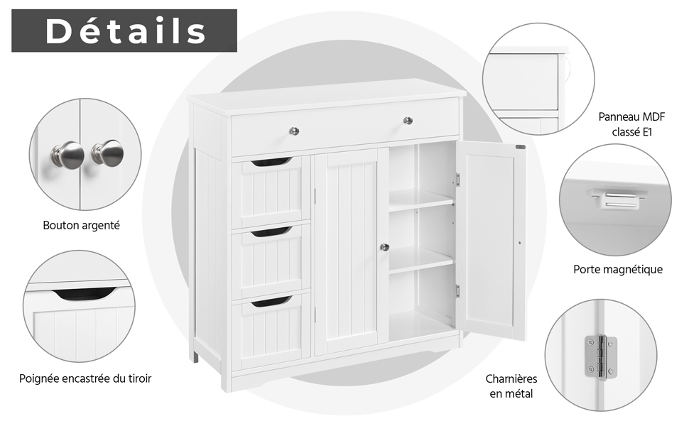 6. Solide et stable : Bien sélectionné, ce meuble de salle de bain est constitué de panneaux épais certifié FSC, pouvant supporter une charge élevée. Vous pouvez fixer le meuble avec un kit anti-basculement (fournis avec le produit) pour plus de sécurité