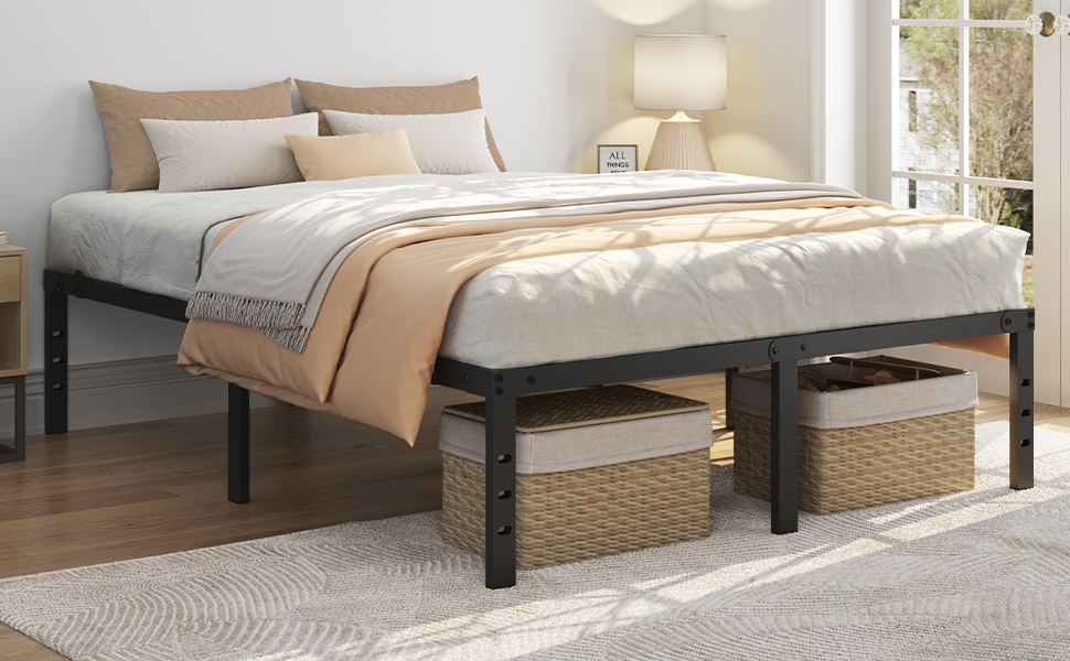À la recherche d'un cadre de lit simple et pratique ? Découvrez ce cadre de lit en métal. Lignes épurées, finition mate, ce modèle ajoute une simplicité élégante dans votre intérieur. Robuste, ce lit en métal est équipé d'une structure à lattes solides, permettant une charge élevée. Ses bords surélevés fixent le matelas sur place. Les patins en mousse au milieu évitent le grincement du cadre. Sous le lit métallique se cache un espace spacieux. Vous pouvez y ranger des corbeilles ou des valises. Les trous au bout du lit vous permettent de fixer facilement votre tête de lit favorite. Un ajout agréable dans la chambre à coucher ou la chambre d'amis.