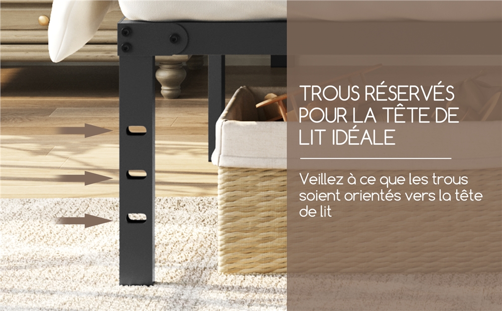 2. Le matelas, le sommier et la literie (couette, draps, oreillers, etc.) ne sont PAS inclus.