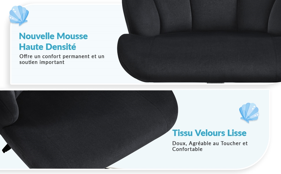 5.Style Moderne des Années 50 : Bien rembourrée en mousse souple, la chaise bureau velours avec pied métallique électroplaqué présente une silhouette unique avec un siège à l'effet de coquillage, ajoutant une touche d'élégance intemporelle à votre intérieur