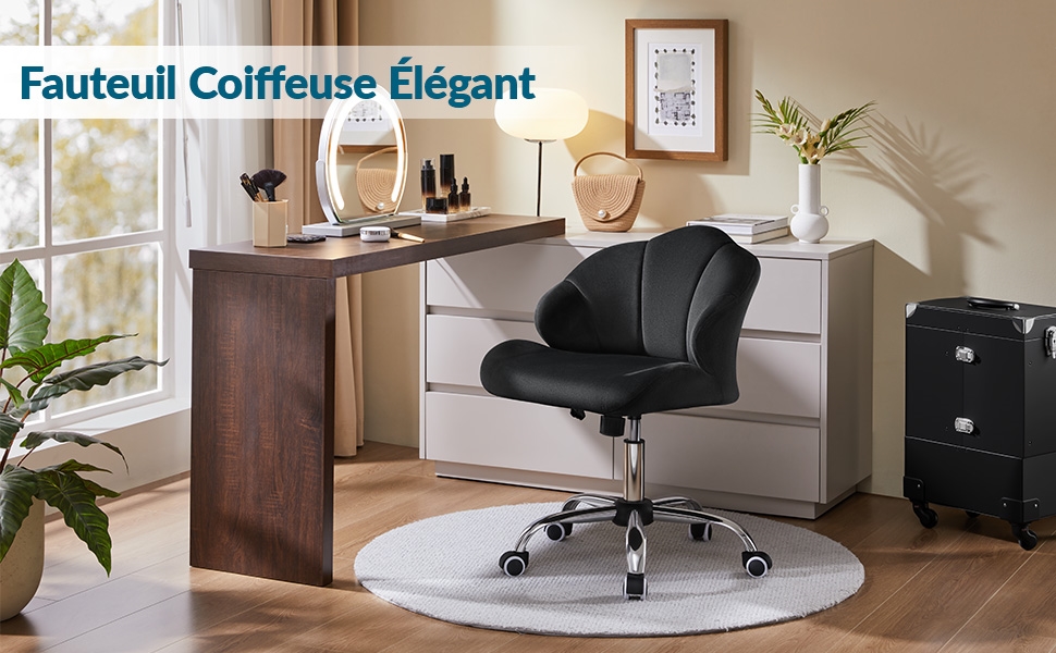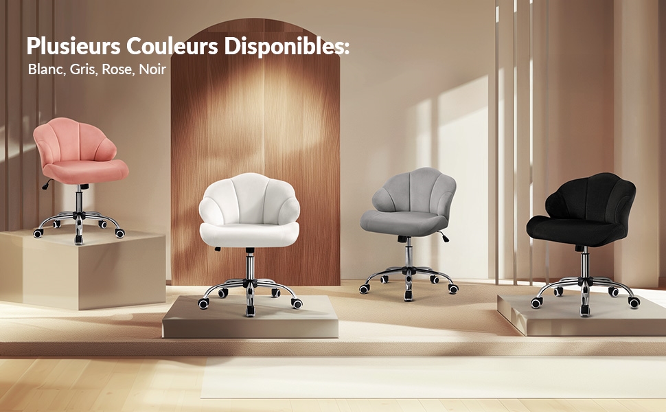 1.Design Inspiré des Coquillages : Cette chaise de bureau arbore un dossier incurvé avec des bords festonnés, créant un effet de coquillage et une touche côtière à votre espace. Le velours soyeux, orné de coutures capitonnées, lui confère une allure élégante