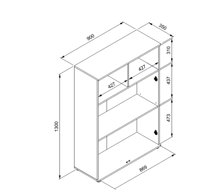 Avec ses dimensions de longueur 90 cm, hauteur 130 cm et profondeur 35 cm, ce buffet optimise l'espace tout en offrant une capacité de rangement appréciable grâce à ses deux portes et deux niches.