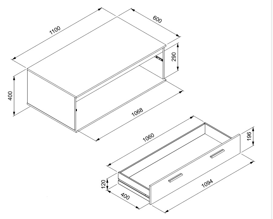 Avec ses dimensions de longueur 110 cm, hauteur 40 cm, et profondeur 60 cm, elle s'intègre facilement dans tout espace de vie.