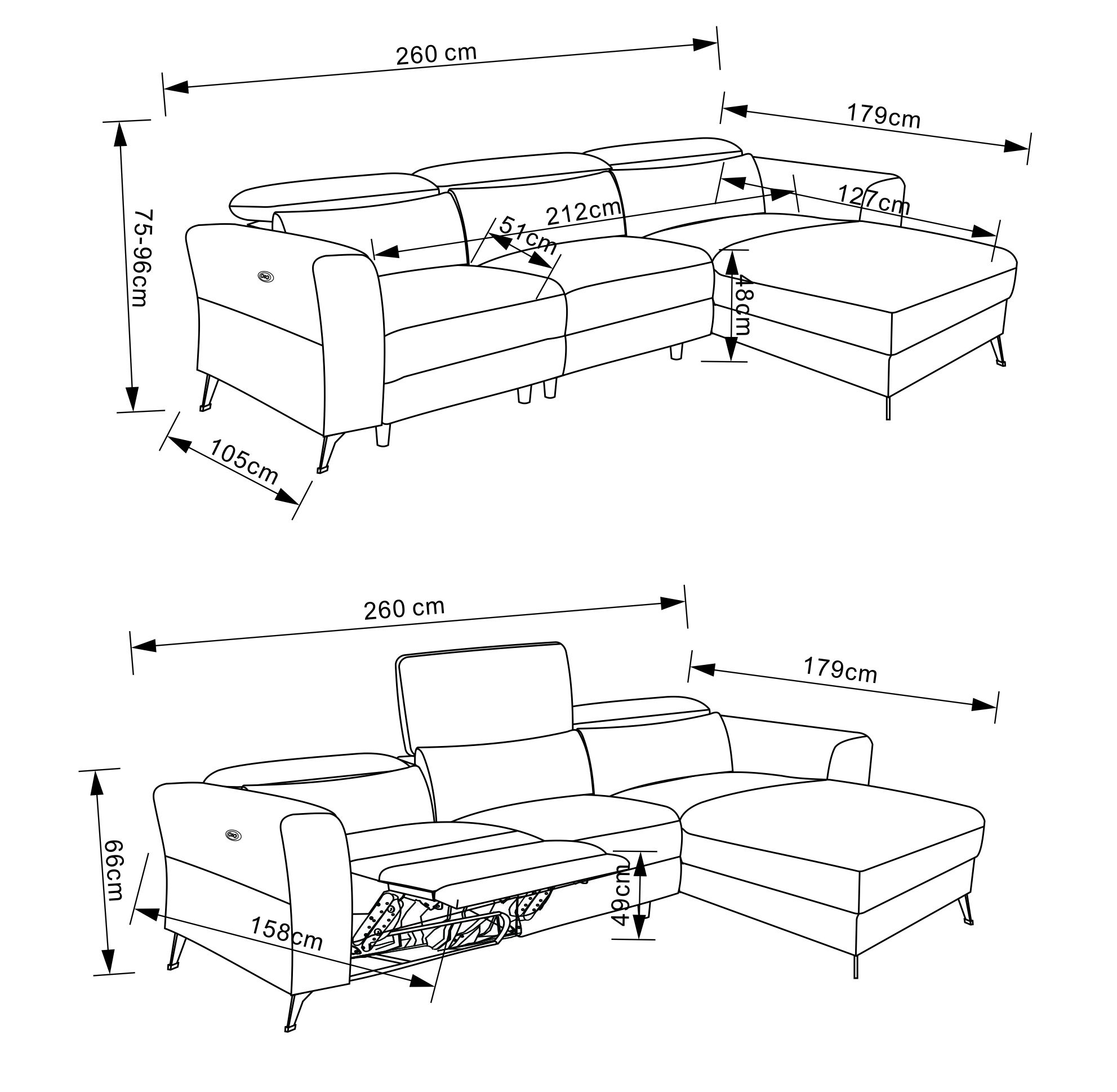 Le canapé d'angle droit relax électrique CARLOS tissu gris allie élégance moderne et confort optimal.