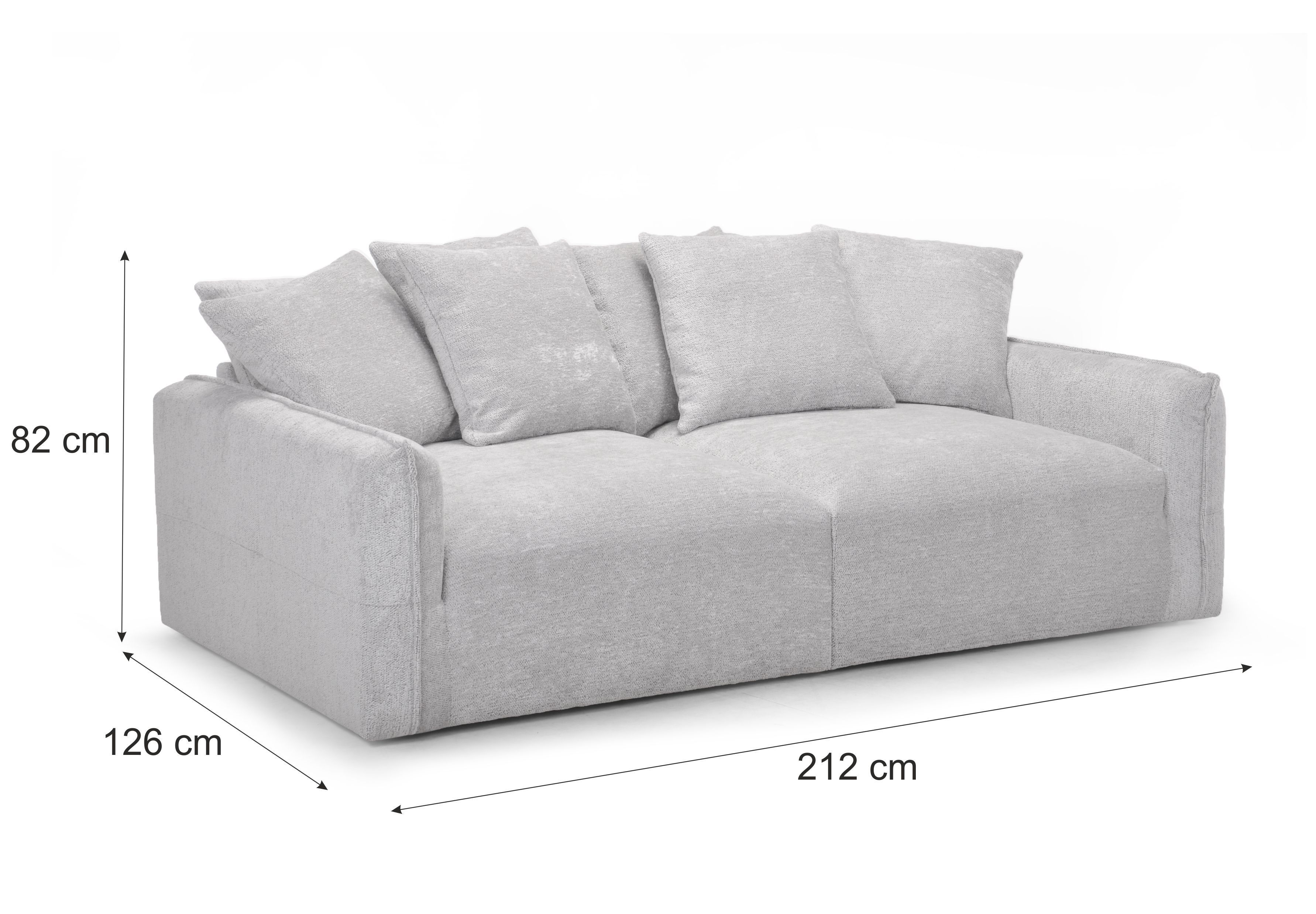 Avec ses dimensions généreuses de longueur 212 cm et profondeur 126 cm, il offre une assise spacieuse et accueillante.