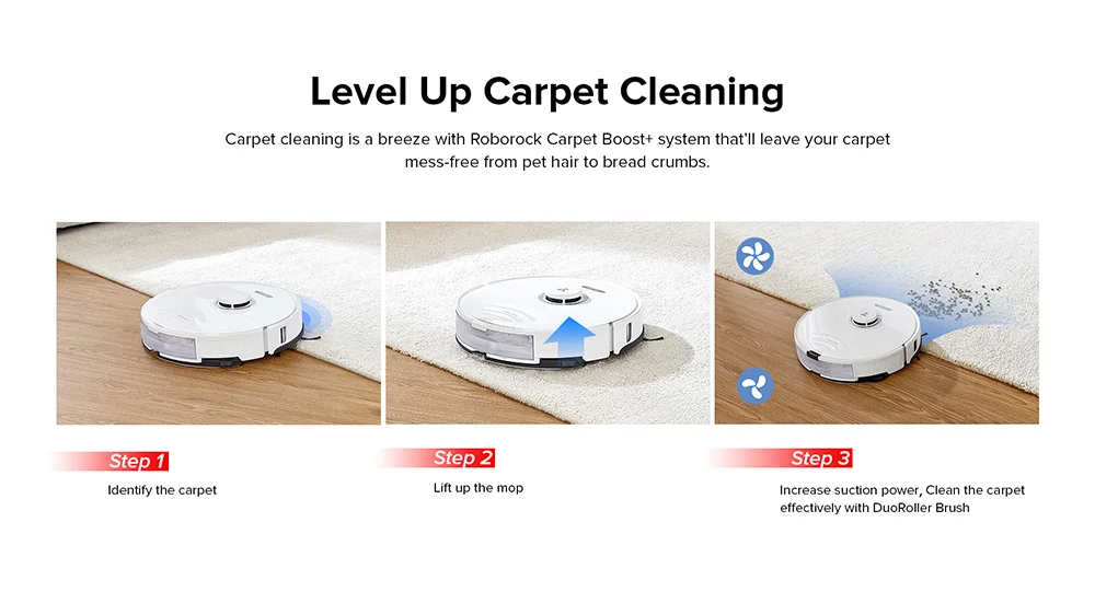 1 Puissance d'aspiration de 6000Pa: S8 a plus de puissance d'aspiration que n'importe quel robot Roborock précédent produit un maximum de 6000 Pa. C'est plus du double des performances du Roborock S7. Il absorbe rapidement la saleté, les cheveux, la poussière et plus encore des sols durs et des tapis.