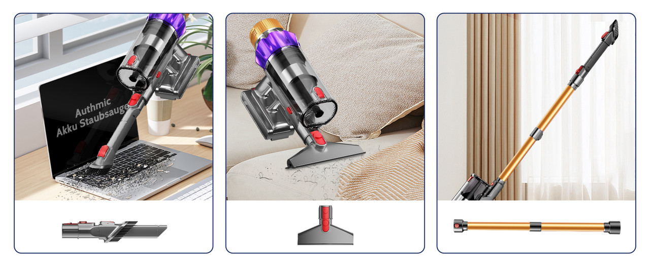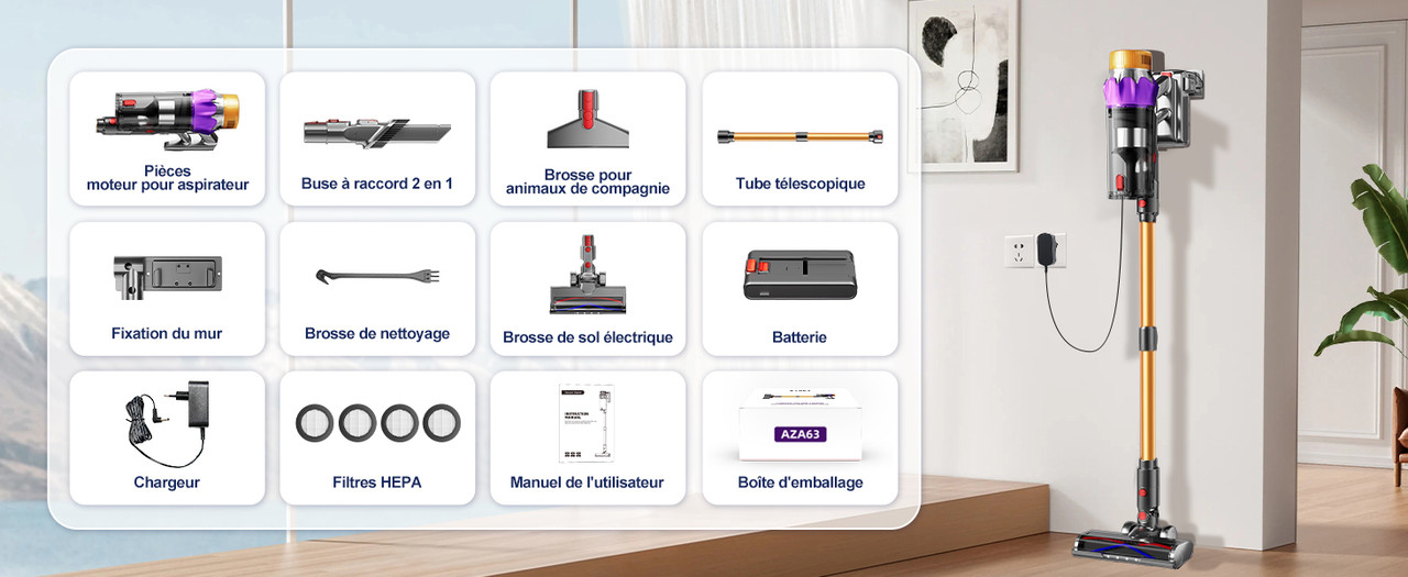 Cet aspirateur balai sans fil est équipé d'un moteur sans balais de 650W à la technologie améliorée, offrant une puissance d'aspiration allant jusqu'à 65 000 Pa. Grâce à cette performance exceptionnelle, il aspirateur efficacement poussière, les poils d'animaux ainsi que les particules fines souvent négligées. Qu'il s'agisse de tapis épais, de sols durs ou de recoins difficiles d'accès, cet aspirateur sans sac s'adapte à toutes les surfaces. Aspirateur sans fil design spécialement conçu pour réduire le bruit permet de maintenir un niveau sonore inférieur à 58 dB, vous assurant ainsi une expérience de nettoyage efficace et agréable sans perturber votre environnement.