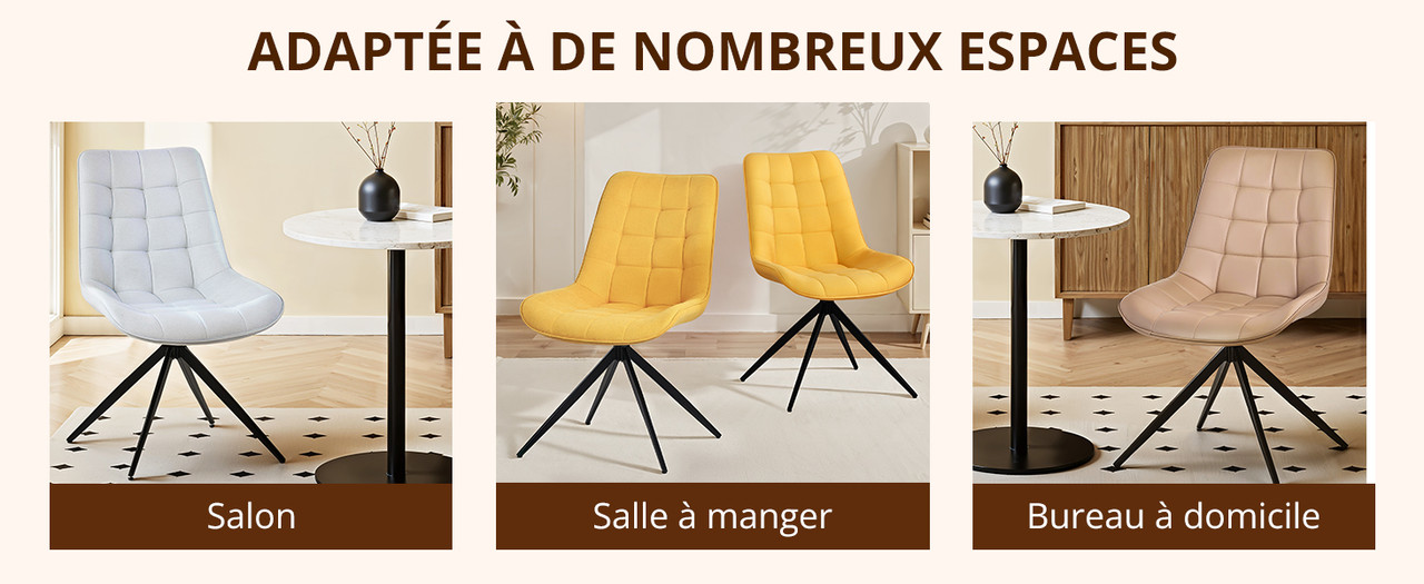 Polyvalente, cette chaise convient comme chaise de chambre, de salon, d’ordinateur, de coiffeuse, de bureau, de cuisine, de bar, ou encore pour table et chaise de bureau.