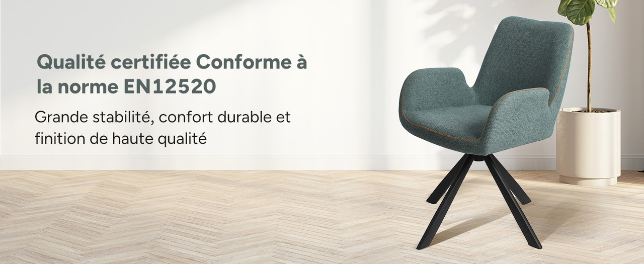 Qualité certifiée – Conforme à la norme EN12520 : Grande stabilité, confort durable et finition de haute qualité.