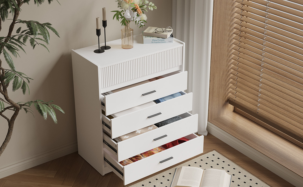 Grand espace de rangement : 6 tiroirs spacieux pour organiser vêtements, livres, vaisselle, objets déco ou essentiels du quotidien.