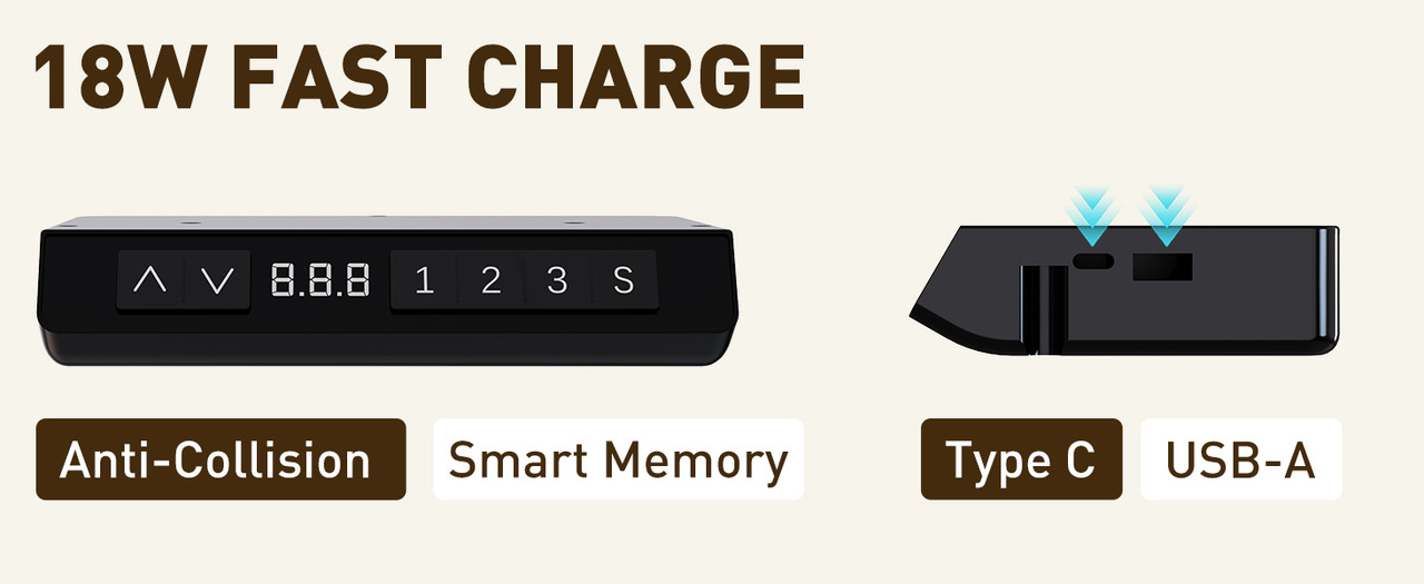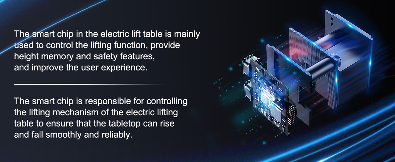 Notre puce technologique permet un réglage intelligent de la hauteur avec une sensibilité exceptionnelle, tout en intégrant des fonctions de protection contre la surcharge et la surchauffe, faisant de ce bureau un compagnon intelligent pour votre santé.