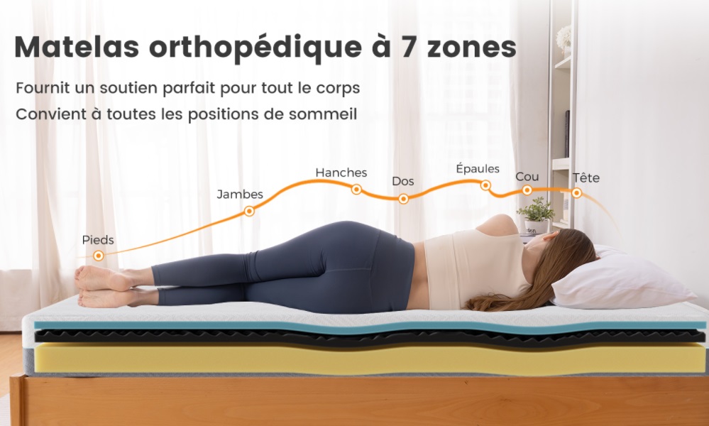 Cette couche offre une adaptation parfaite à la forme de votre corps, soulageant les points de pression et réduisant la tension musculaire et articulaire pour un confort optimal pendant la nuit.