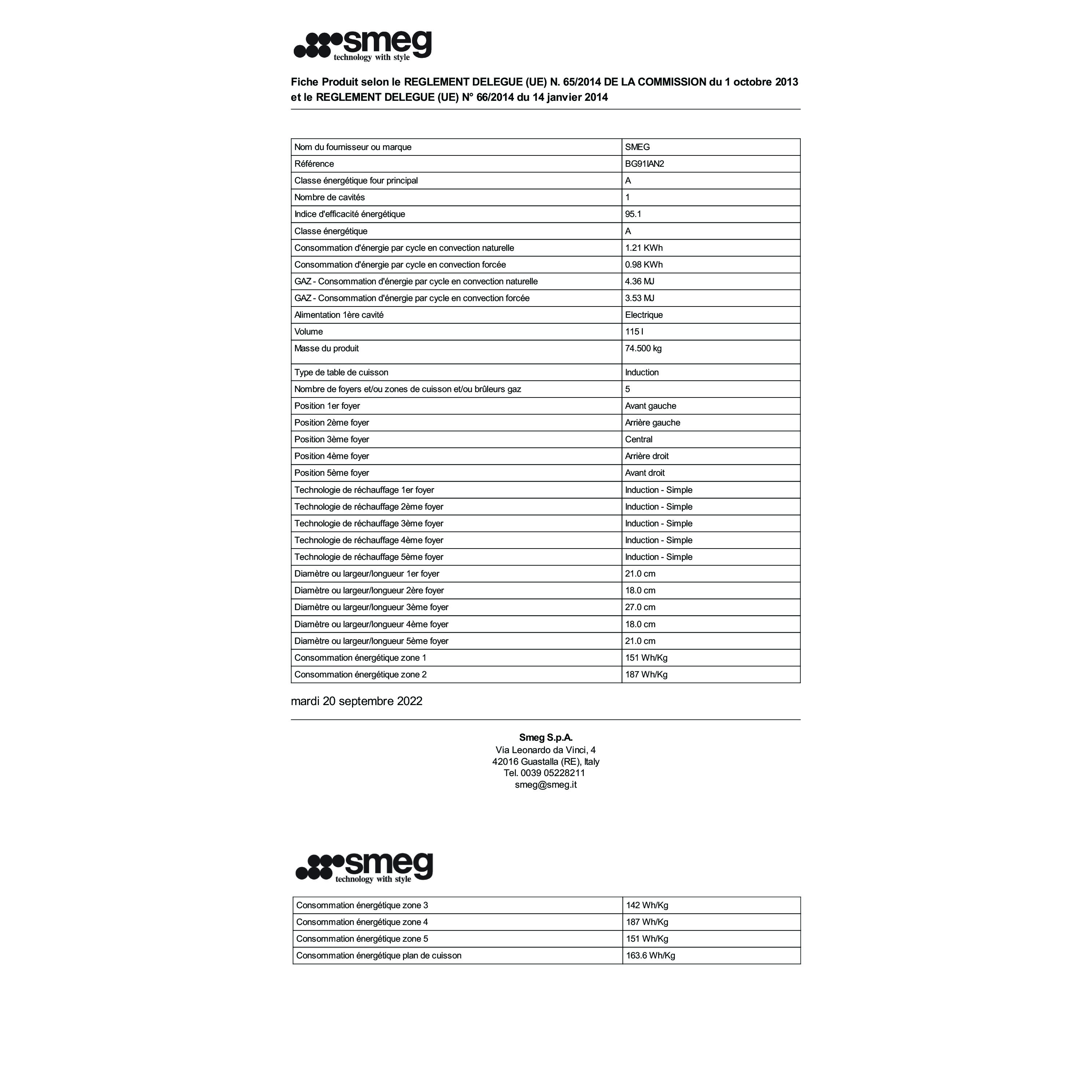 Le Piano de cuisson SMEG BG91IAN2 est un appareil performant et économe en énergie, avec une classe énergétique A.