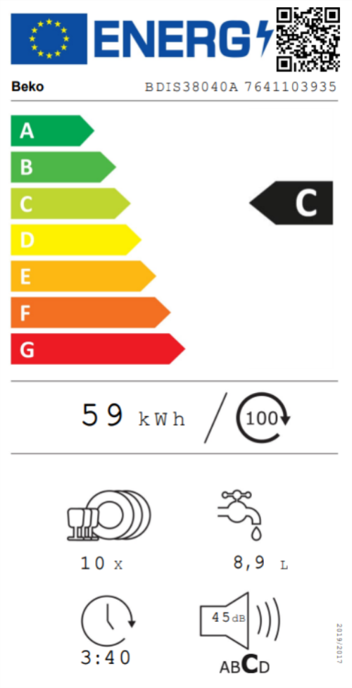 Le lave-vaisselle intégrable BEKO BDIS38040A est conçu pour offrir une efficacité énergétique remarquable, avec une classe C qui garantit une faible consommation d'énergie.