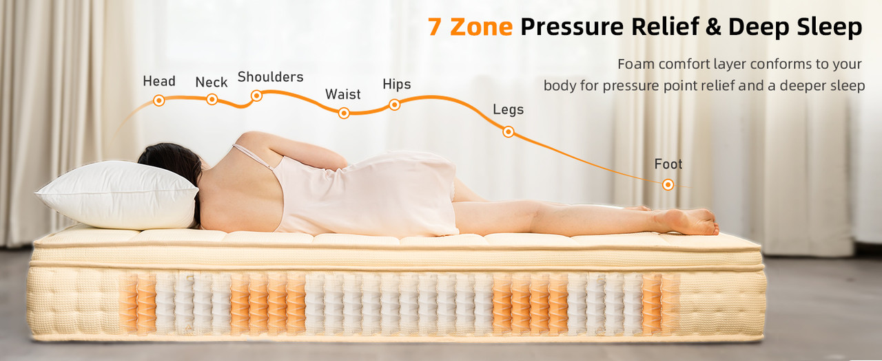 Ce matelas à ressorts ensachés 9 zones (H3) offre un soutien précis de la colonne lombaire et un soulagement confortable de la pression, adapté à toutes les positions de sommeil.