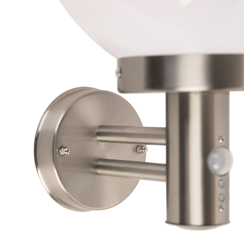 QAZQA Applique Murale D'extérieur En Acier Inoxydable Ip44 Avec Détecteur De Mouvement - Sfera
