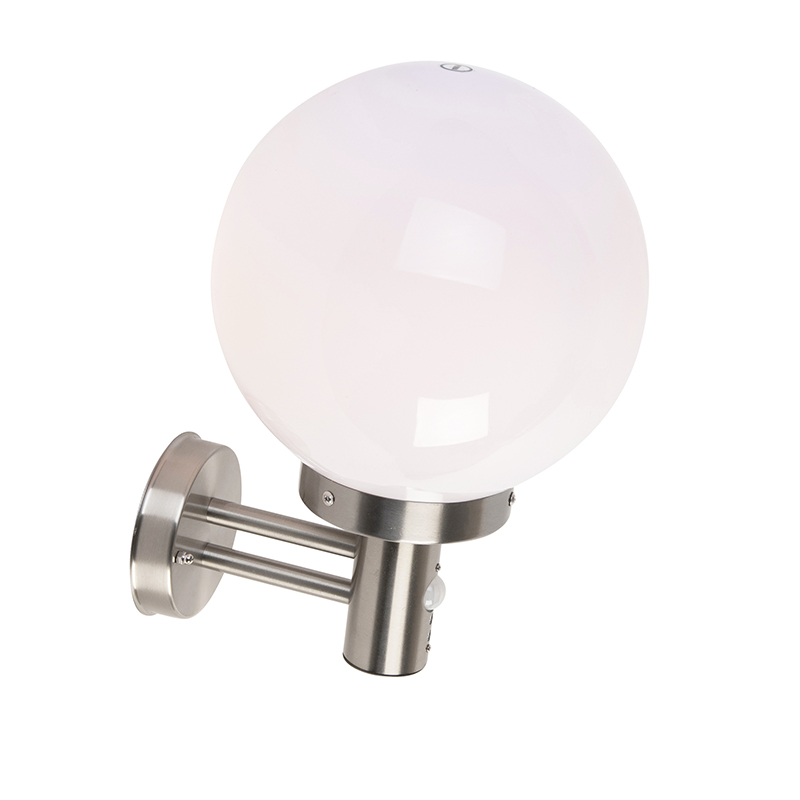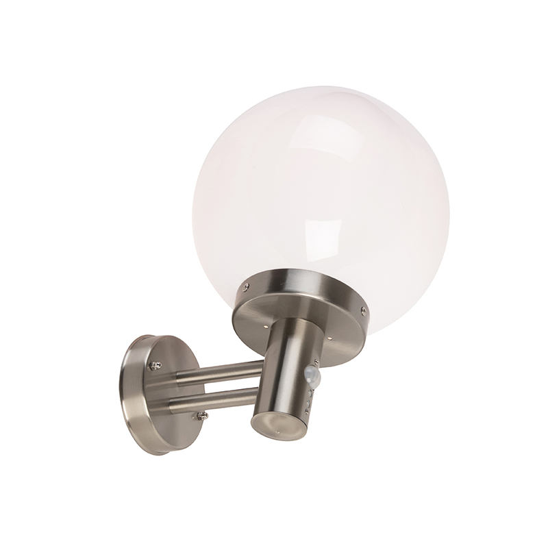 le qazqa applique d'extérieur en acier inoxydable ip44 avec détecteur de mouvement - sfera est acier. Les espaces de vie appropriés pour cette lampe sont: éclairage extérieur. finir le look de votre intérieur avec ce applique d'extérieur en acier inoxydable ip44 avec détecteur de mouvement - sfera!