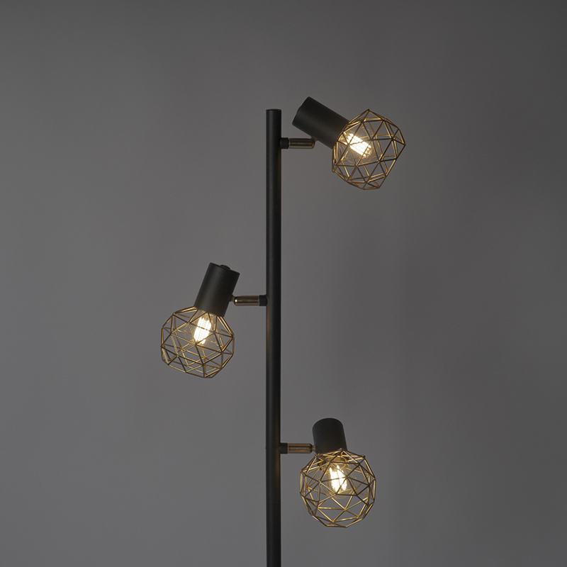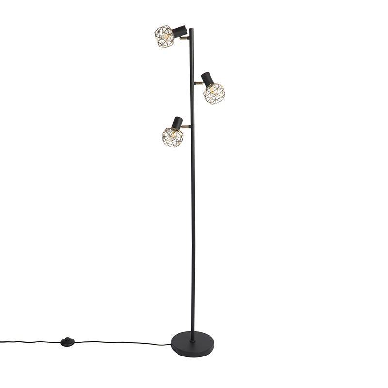 QAZQA Lampadaire Design Noir Avec Or 3 Lumières Orientable - Mesh
