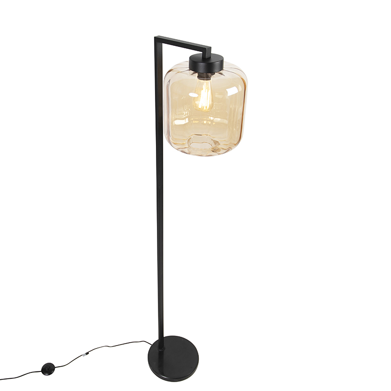 QAZQA Lampadaire Design Noir Avec Verre Ambré - Qara Down
