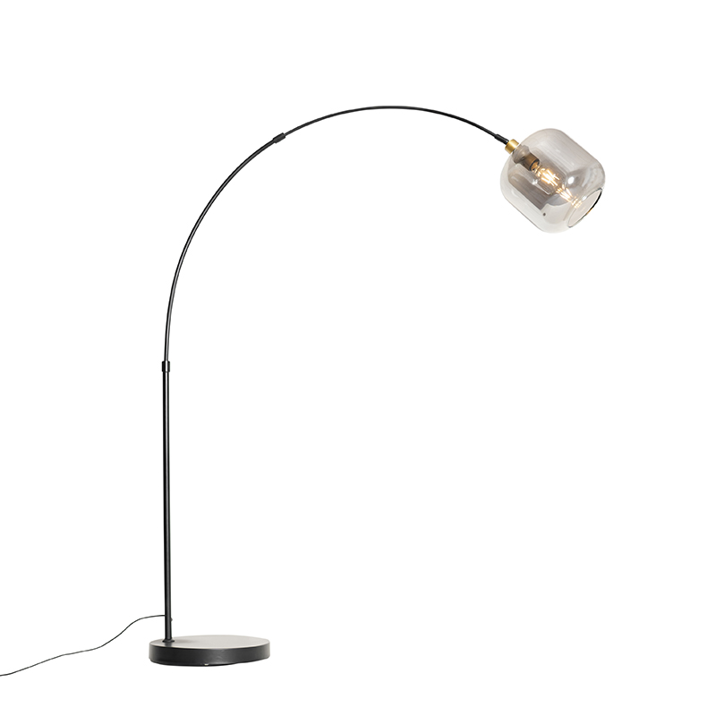 QAZQA Lampe à Arc Noir Avec Or Avec Verre Fumé - Zuzanna